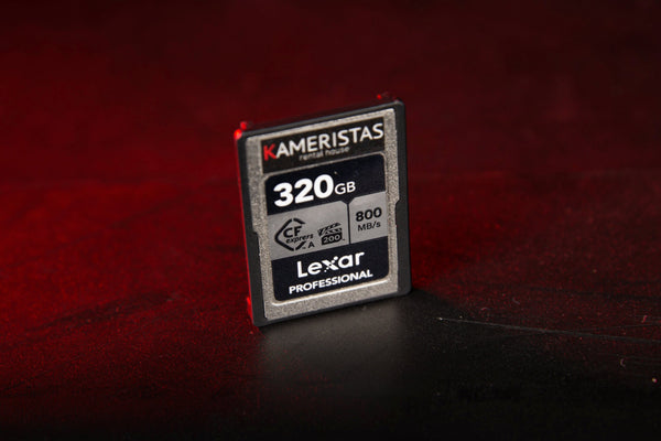 Nuomojama Lexar CFexpress 320GB Type A Silver kortelė. Turime papildomai ir CFexpress kortelių skaitytuvą.